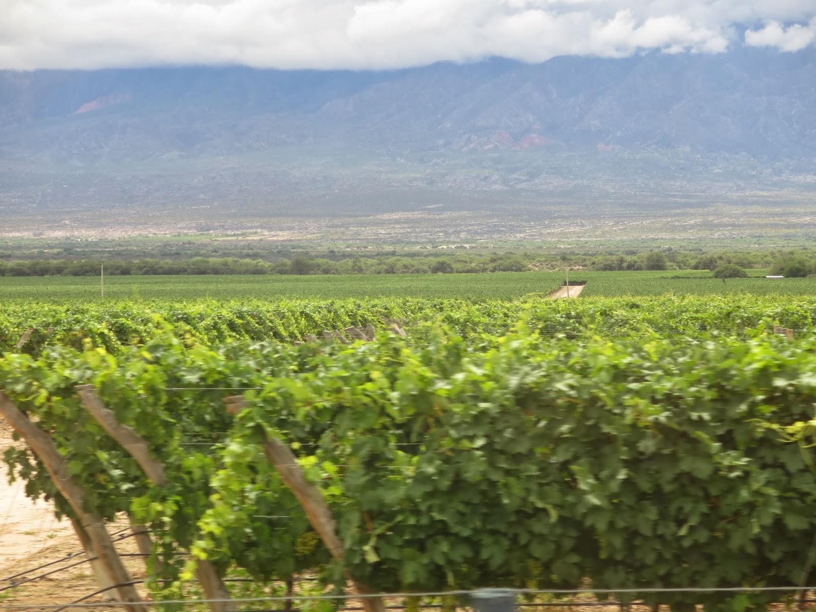Der Weg von Amaicha de Valle führt uns über die Stadt Cafayate, einer weiteren Weinanbau-Region von Argentinien. Hier gibt es einige riesige Weingüter. Zwar kommen wir auch noch an der Ruinenstätte Quilmes vorbei, einer ehemaligen Kriegsstätte zwischen dem Stamm der Quilmes und den Spaniern, welchen sie hier - schlussendlich erfolglos - erbitterten Widerstand leisteten. Wegen des immer noch leichten Regens lassen wir diese Sehenswürdigkeit aus, weil alles matschig ist. Die Strasse ist im Gebiet bis Cafayte teilweise unterspült worden, so dass Sand und Geröll unseren Weg behindern und viele Strassenräumarbeiten stattfinden.